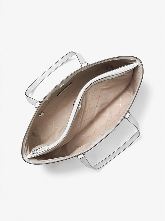 Since 1981, Michael Kors has been redefining modern glamour—and this tote is a timeless example. Crafted from a durable coated canvas blend with refined silver-tone hardware, it balances sophistication with practicality.